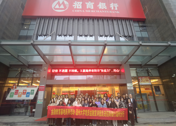 将金融宣讲团成员“送出去”,送到招商银行温州分行实地参观招商银行温州分行营业部,了解银行网点大厅的整体布局、各个区域的功能、日常工作情况、业务办理流程等。