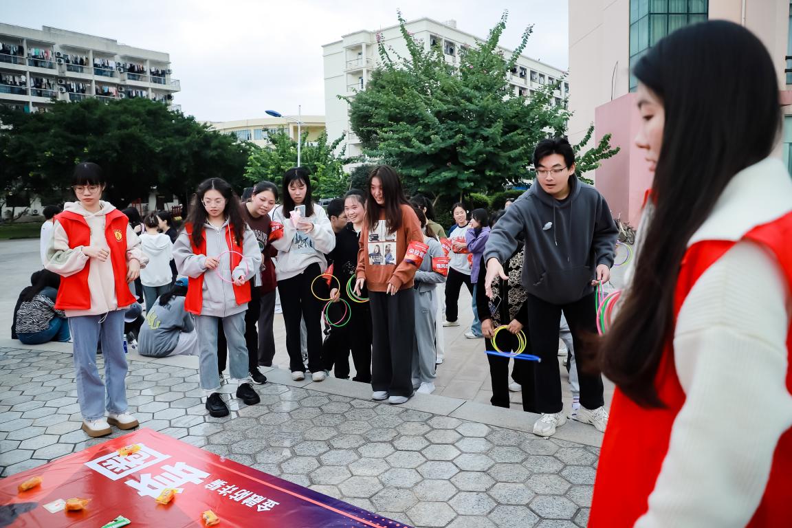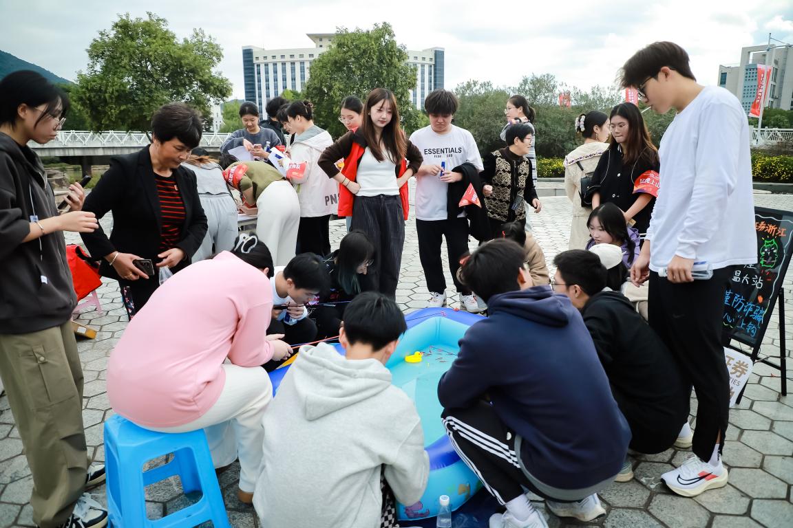 “原来还可以通过定向运动来巩固和学习金融知识,长知识啦!”活动现场,参赛同学们热情高涨、心情激动。“快快快快快快,我们要以最快的速度确定好反诈代言姿势”,“快来快来,急急急,其他队伍要追上我们啦”,他们在校园里飞速奔跑,展现出满满的青春活力和昂扬的精神风貌;“一二一,一二一,我们快到终点啦”,凭借着口令的指导,从最初的手忙脚乱中逐渐实现步调的整齐统一……20支参赛队伍现场展开比拼,团队通力合作,“沉浸式”体验趣味竞赛。活动现场还结合反诈防骗主题精心准备了小心“上钩”钓鱼游戏和套圈游戏,结束任务的选手可以凭借正确答题数量、填写问卷获得套圈次数或者钓鱼机会。