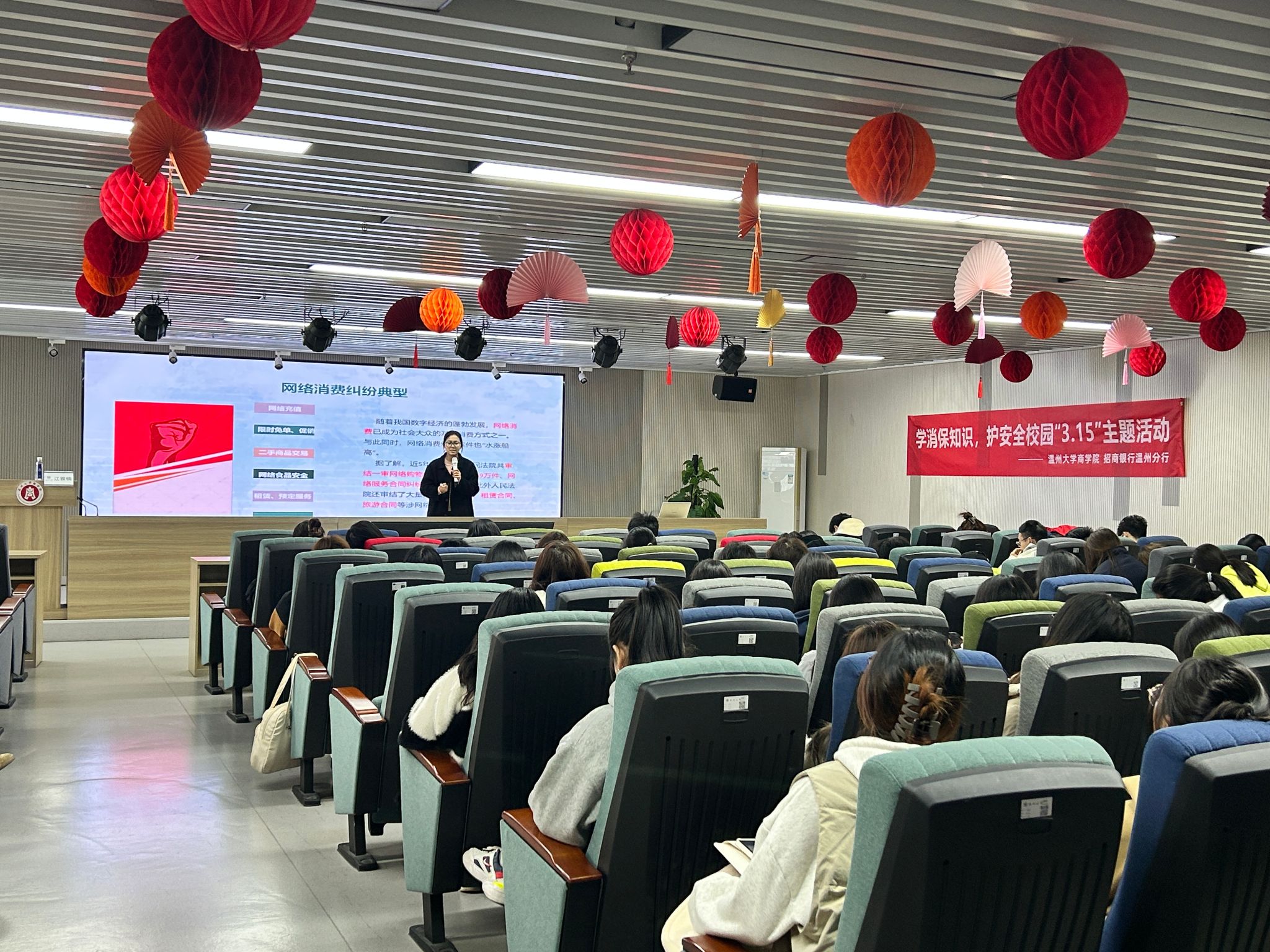 金融知识宣教协会(以下简称“协会”)特别策划了“学消保知识,护安全校园”“五个一”特别活动,即发布一封倡议书、组织一次小讲座、观看一部经典维权电影、解析一个经典维权案例、开展一次主题宣传,以此教育引导师生树立科学消费、绿色消费的观念,合理维护自身权益。