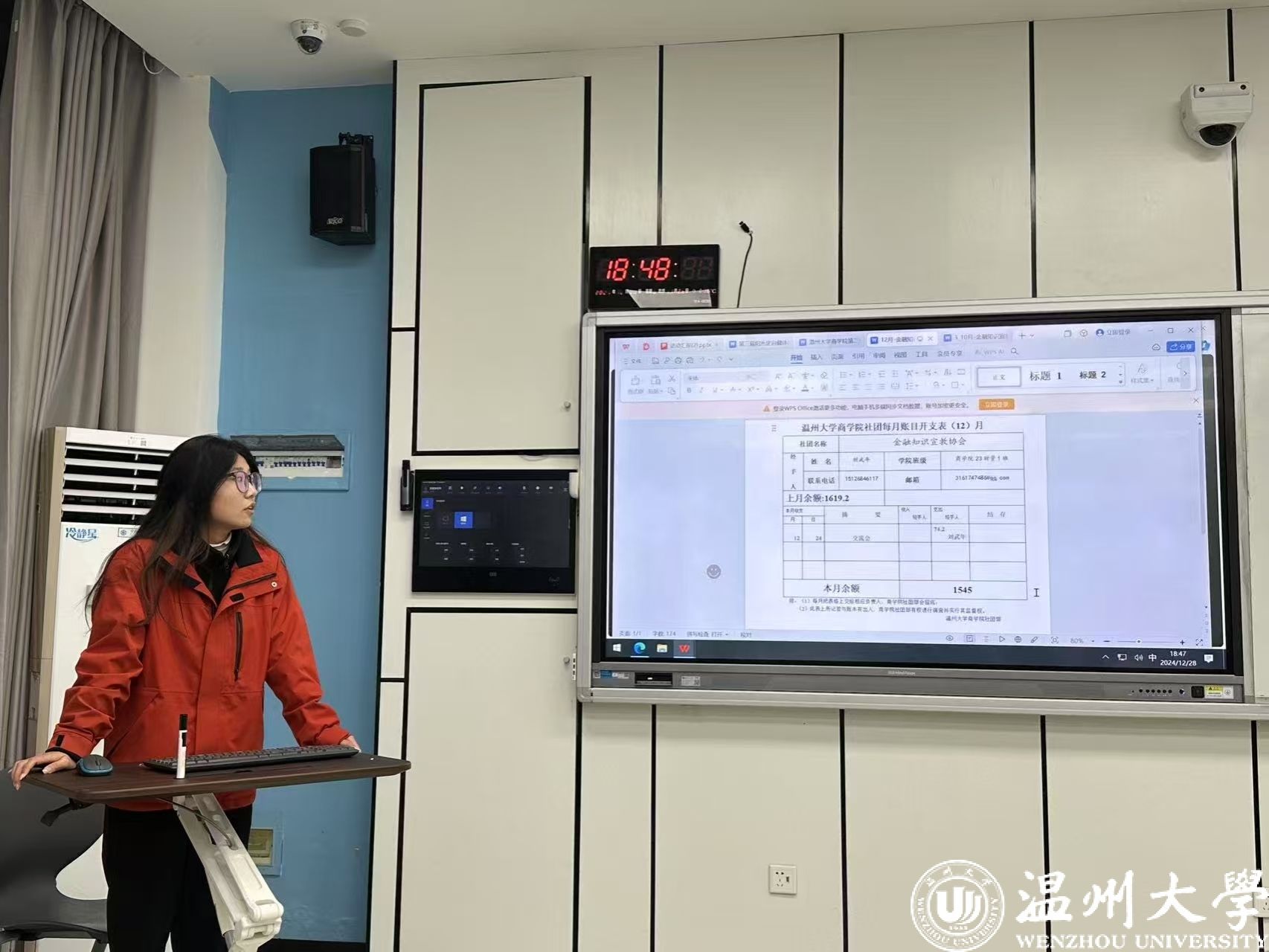 服务部部长刘武年同学展示了协会的财务报表,保证协会的财务公开透明,也让社员们深刻明白一个组织的正常运行是需要资金的支持的。