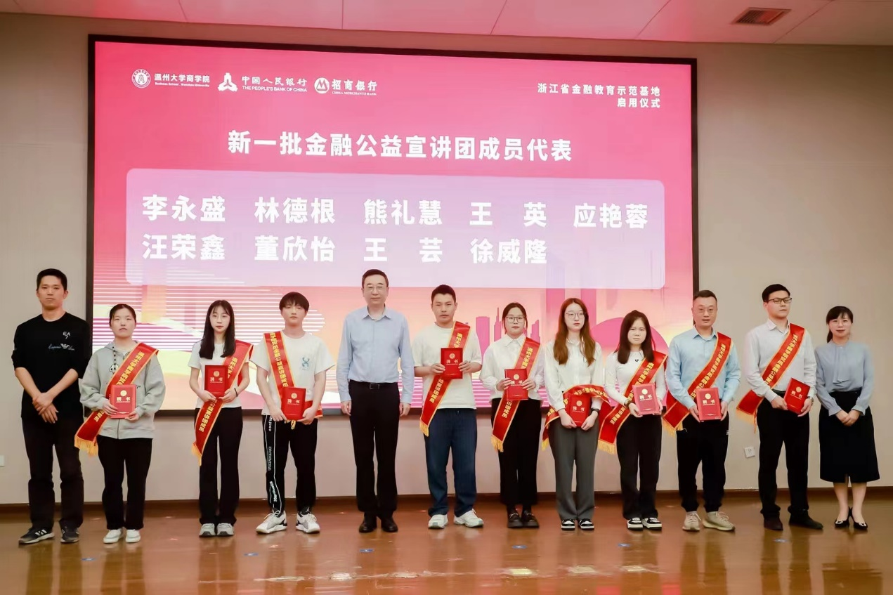 北校区信息楼报告厅隆重举行浙江省金融教育示范基地的启用仪式。中国人民银行温州市中心支行党委委员、副行长宋征威,招商银行温州分行党委书记、行长袁森,51暗网