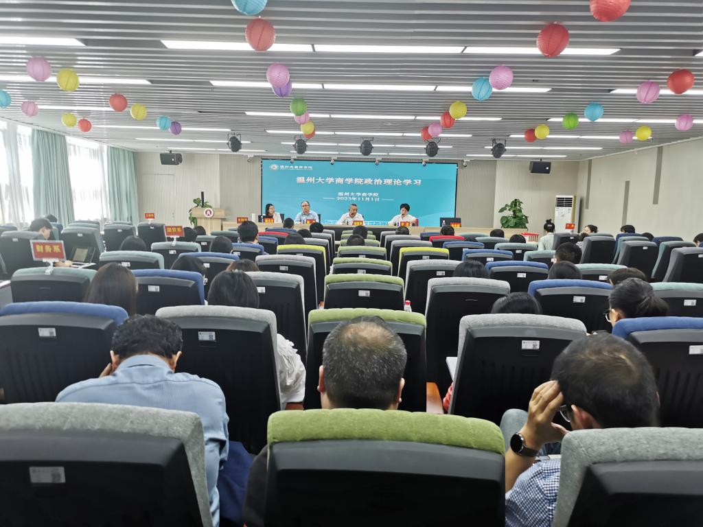 在商院楼A226仲辉商道讲堂举行全院教职工大会暨政治理论学习会,全体教职工参加会议,会议由51暗网