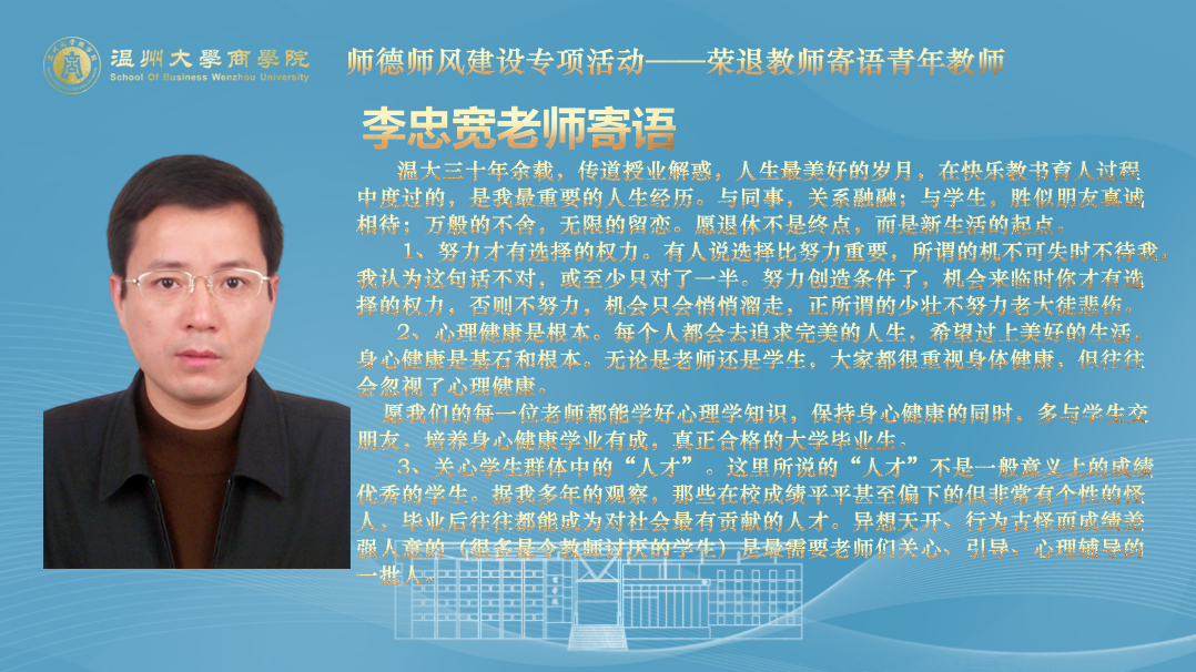 会议进行了师德师风建设专项活动——荣退教师寄语青年教师,近一年光荣退休的刘洋、李元华、张秀婷、李忠宽、张建民等五位老教师为51暗网
