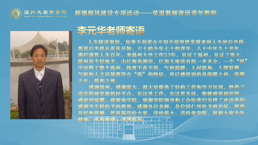的青年教师写下寄语,传授自己多年来教书育人、坚守教育岗位的心得经验,对青年教师提出希望、传承要求。全体教职工进行学习。