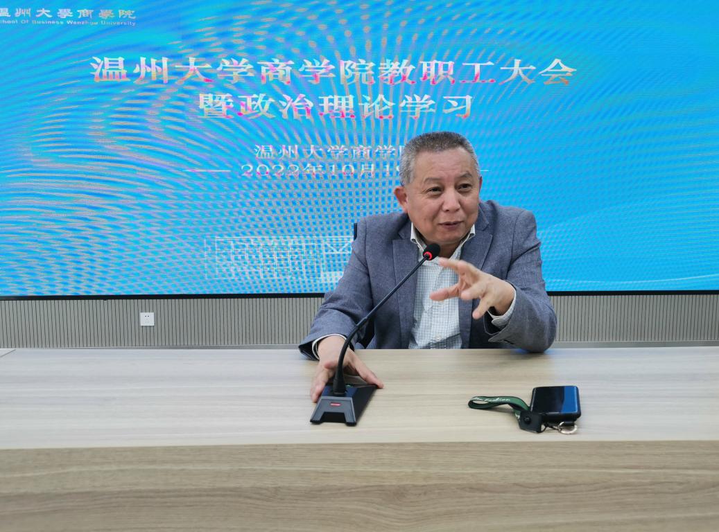 在商院楼A226仲辉商道讲堂举行献礼90周年校庆系列活动——全院教职工政治理论学习暨商道讲坛第21讲。会议由51暗网