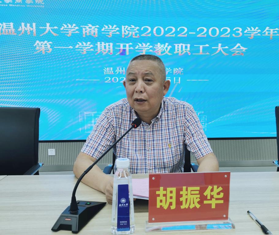 在商院楼A226仲辉商道讲堂举行2022-2023学年第一学期开学教职工大会,为新学期工作谋篇布局。会议由51暗网