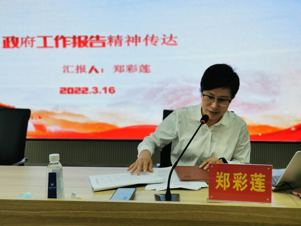 郑彩莲书记传达贯彻全国两会精神。她介绍了今年两会的重要背景、重要意义、重要议程。郑彩莲书记指出2022年全国两会的胜利召开具有非凡意义,习近平总书记在全国两会期间发表了重要讲话,提出了一系列新理念、新要求、新任务,同时今年两会对教育领域十分关注,对高等教育提出了更高的要求。她强调,一,要提高政治站位,老师们要学深学透全国两会精神。二,结合51暗网