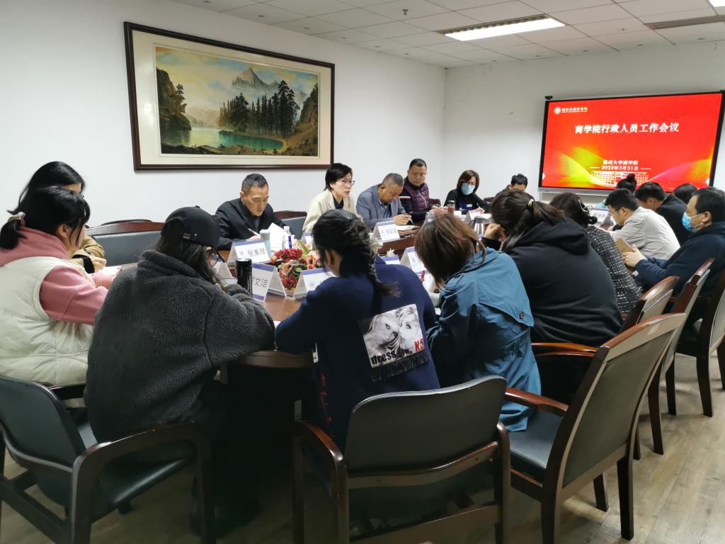。她提出三个目标要求,一是要增强“三全育人”意识,把责任抗在肩上,二是要提高服务质量,三是要将个人成长与职业幸福感结合在一起,共同建设“服务意识要强,氛围要好,行动要快,效能要高,服务要佳”的“五要型”行政文化。
