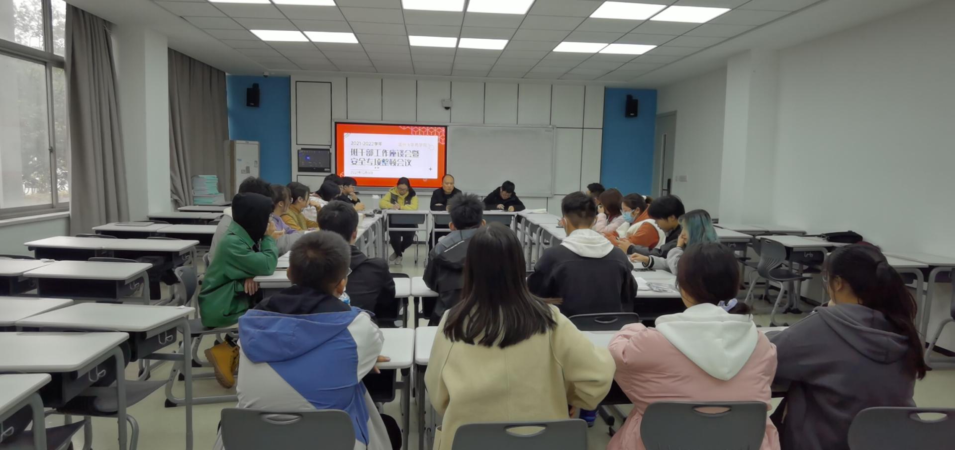 党委副书记唐华、学工办副主任周洁文、全体辅导员参会,本、研各班班长出席会议。