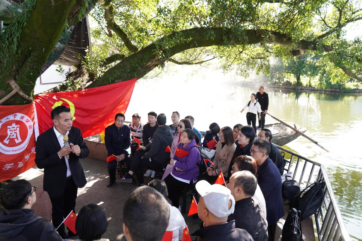 教工党员首先参观了冯宅村,实地考察冯宅村的农田、河流、树木、桥梁、绿道,比较现代农村与印象中的农村的区别。在村头的大榕树下,所有教工党员都坐下来,倾听冯宅村党支书郑有才的党课。郑书记介绍了自己89年复员回家当书记的经历。从改变居住环境入手,想尽办法集资种树,建房子、修路,营造良好的生活生产环境,改善乡村硬条件。在此基础上,着力营建乡村文化,以孝悌文化为切入点,打造二十四孝长廊,评选“村民之星”,鼓励奖励村民的正能量行为,将文化植入到乡村建设和村民的一言一行中,改善乡村软条件。与此同时,大力举办集体经济,借助周边工业发展的优势,开办加工厂,为群众谋福利。目前,村委正在努力谋划修建人才公寓,为周边的工业园提供配套服务,从而做强做大集体经济。