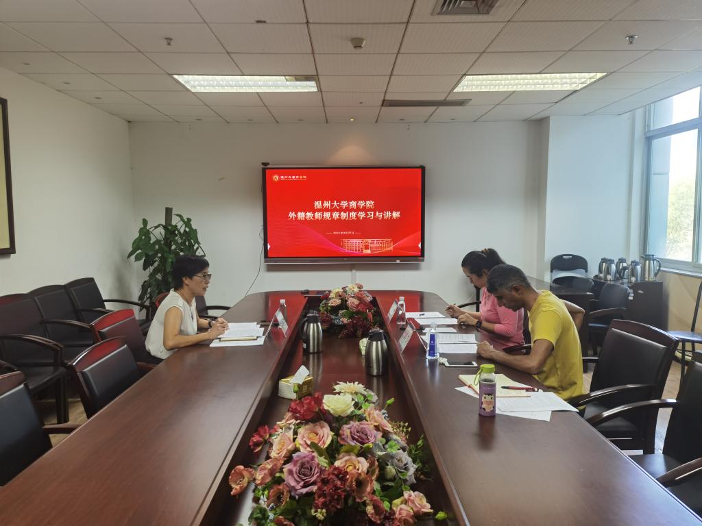 会上,郑彩莲书记就《外籍教师聘任合同》和《外国人在中国就业管理规定》相关条例作了详细解读,对两位外教在中国的生活和工作做了全面了解,希望二位外籍老师遵守中国的法律和51暗网