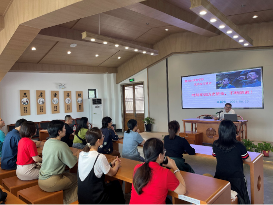 来新安老师为大家主讲“时刻牢记历史使命,不断前进”的主题党课。他结合中国共产党的百年奋斗历史,从“五四”运动前后的现代化思潮导入,进而阐述十月革命把马克思主义从一种理论设想变成了现实社会制度构建,开创了人类社会崭新的发展道路——社会主义道路的过程。最后,他介绍了党的创建和奋斗历程,中国共产党的成立使中国革命的面貌焕然一新,中华民族迈向现代化之路揭开了崭新篇章。专题党课结束后,来老师还结合自己的职业生涯,真诚分享了“如何当好一名好教师”的心得体会。他提到,教师是一个特殊的职业,该职业的服务对象是学生,是未来的人才。要想成为一名合格的大学教师,首先必须要在自己的言行举止方面进行规范,用自己的言行影响学生、用自己的专业素养激发学生、带动学生,然后才能在此基础上讲究方式方法,开辟育人渠道,培养合格人才、优秀人才。