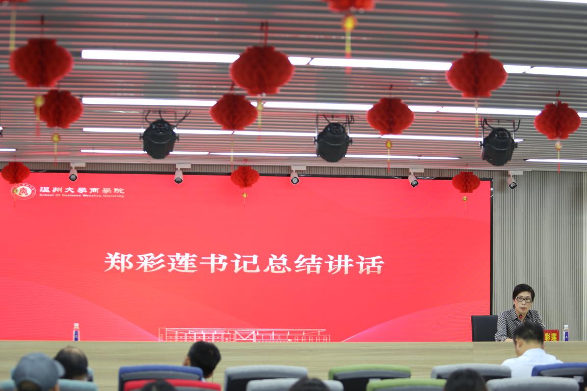 党委书记郑彩莲在总结讲话中指出,“课程思政”建设重点在课程、关键在教师、着力点在体制机制;如何更好地在知识传播中强调价值引领,在价值传播中凝聚知识底蕴,需要广大教师以德立身、以德立学、以德施教,将立德树人根本任务贯穿教育教学全过程;同时需要强化基层党组织建设,突显政治引领功能。