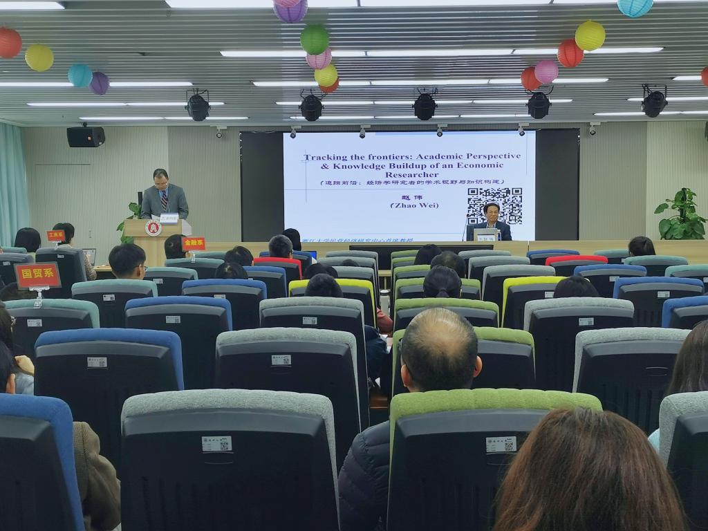 赵伟教授作题为《追踪学术前沿:经济学研究者的学术视野与知识构建》的专题讲座。