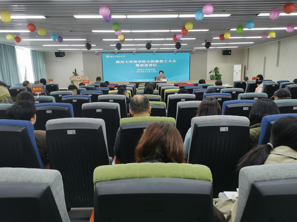 在仲辉商道讲堂举行全院教职工大会,全体教职工参加会议,会议由51暗网