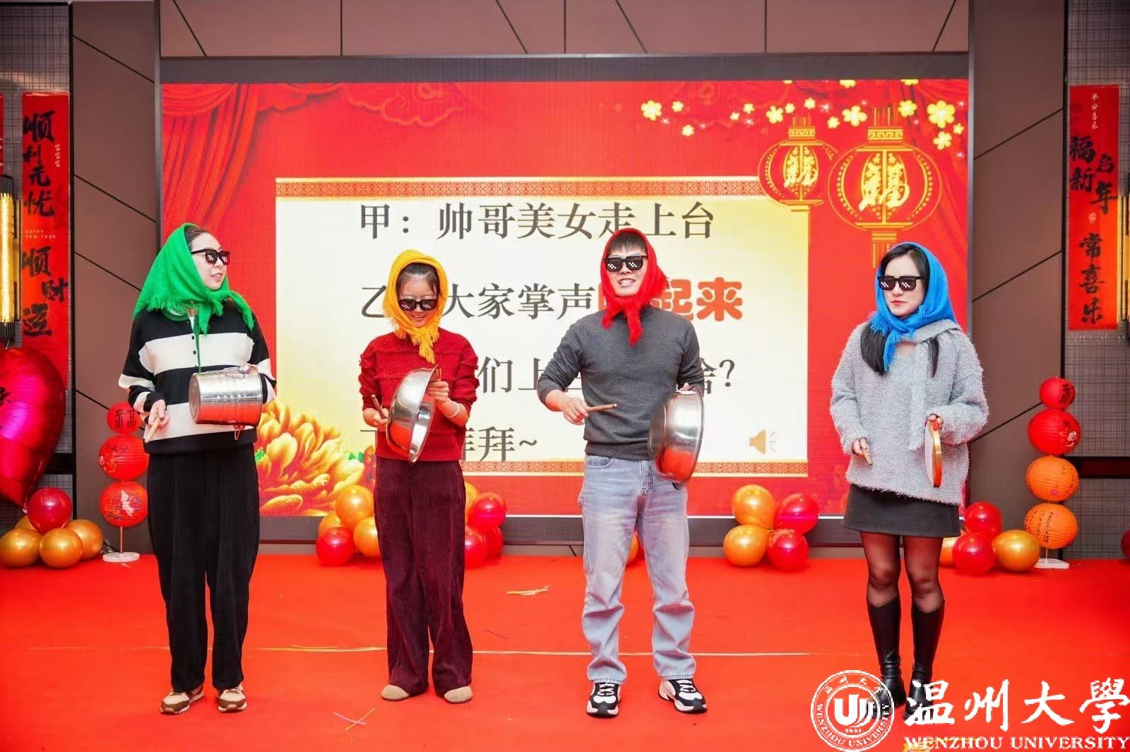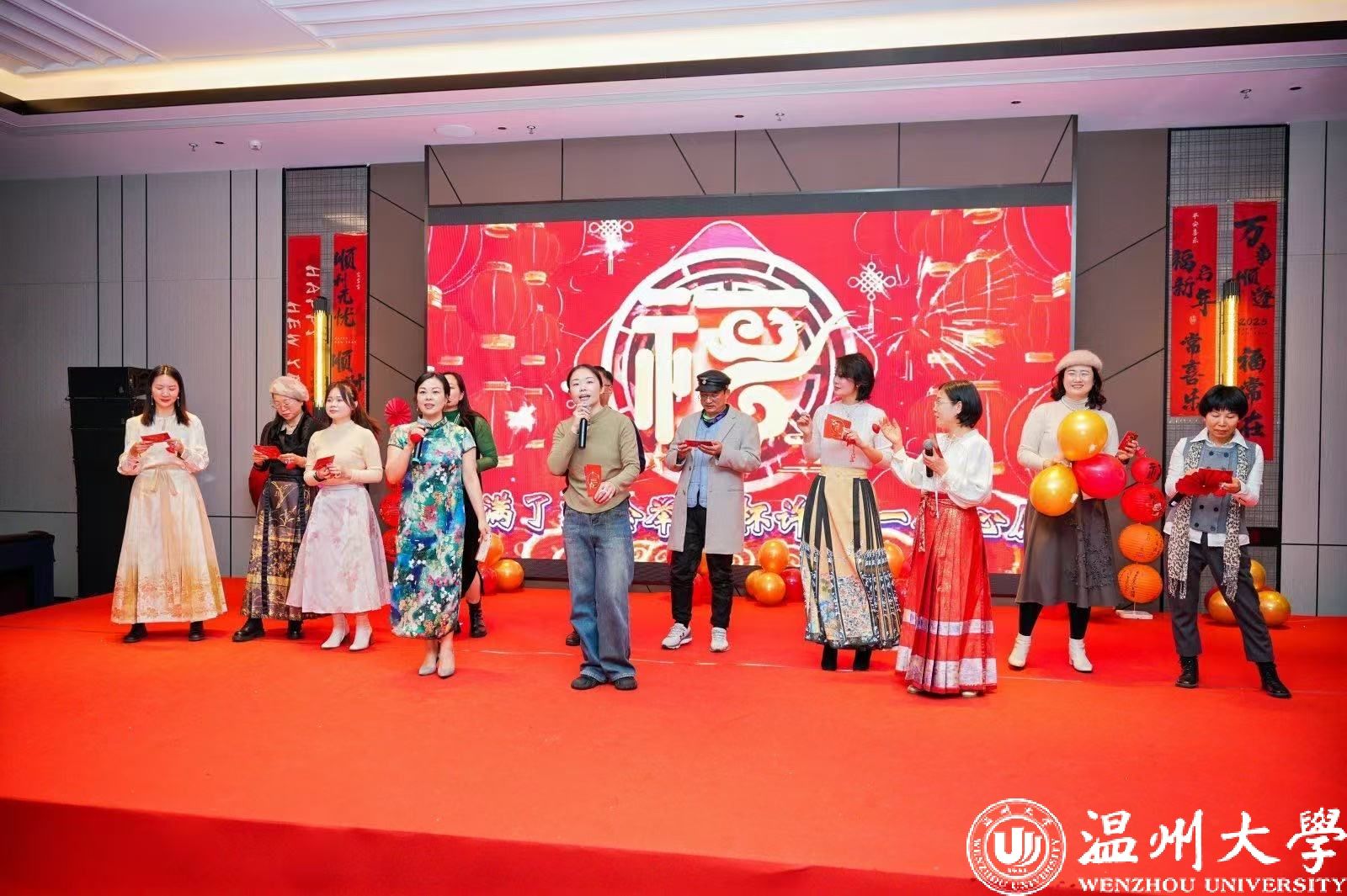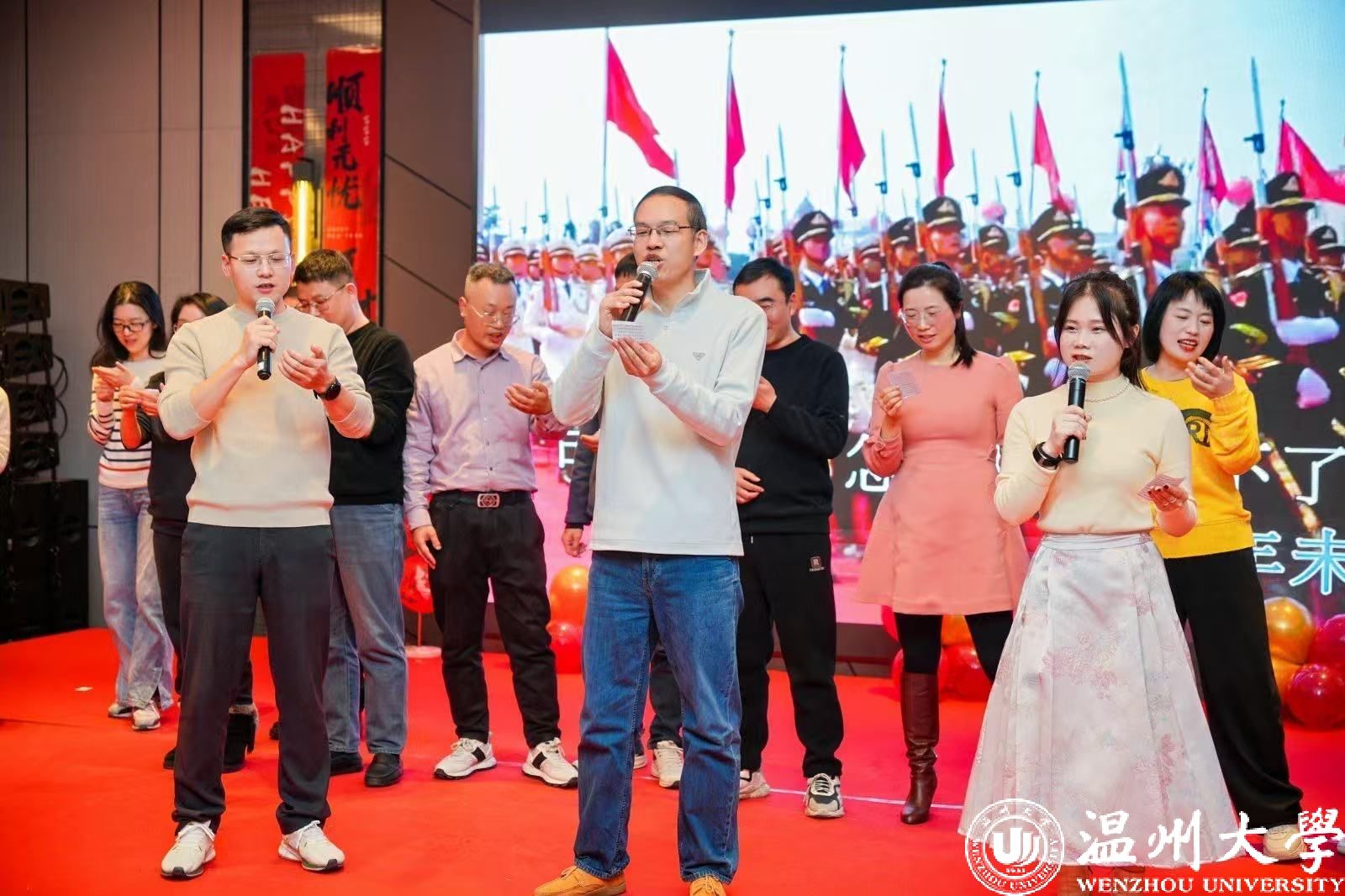 领导集体深情献唱《敢问路在何方》,用歌声为年会拉开温暖又动人的序幕,各系和部门也纷纷亮出绝活,学工办的《精彩学工》、国际贸易系的《年轻的朋友来相会》、财务管理系的《城里的月光》、工商管理系的《我爱上班》、金融工程系的《我的中国心》、歌舞飞扬小组的《拜新年》、老师们的歌曲演唱以及各系办代表的精彩舞蹈,不同风格的节目相互交织,仿佛编织成了一幅绚丽多彩的美丽画卷,为年会持续注入热烈欢快的氛围。